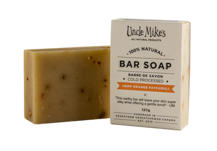 One of Uncle Mike’s longtime fan favourites is the Hemp Orange Patchouli Soap. With an impressive 5-star rating, this earthy handmade soap bar leaves skin feeling silky smooth with its blend of 100% natural ingredients. And, with organic hemp oil near the top of the ingredient list, you’ll be reaping its cleansing skincare benefits including moisturization and skin irritation reduction.